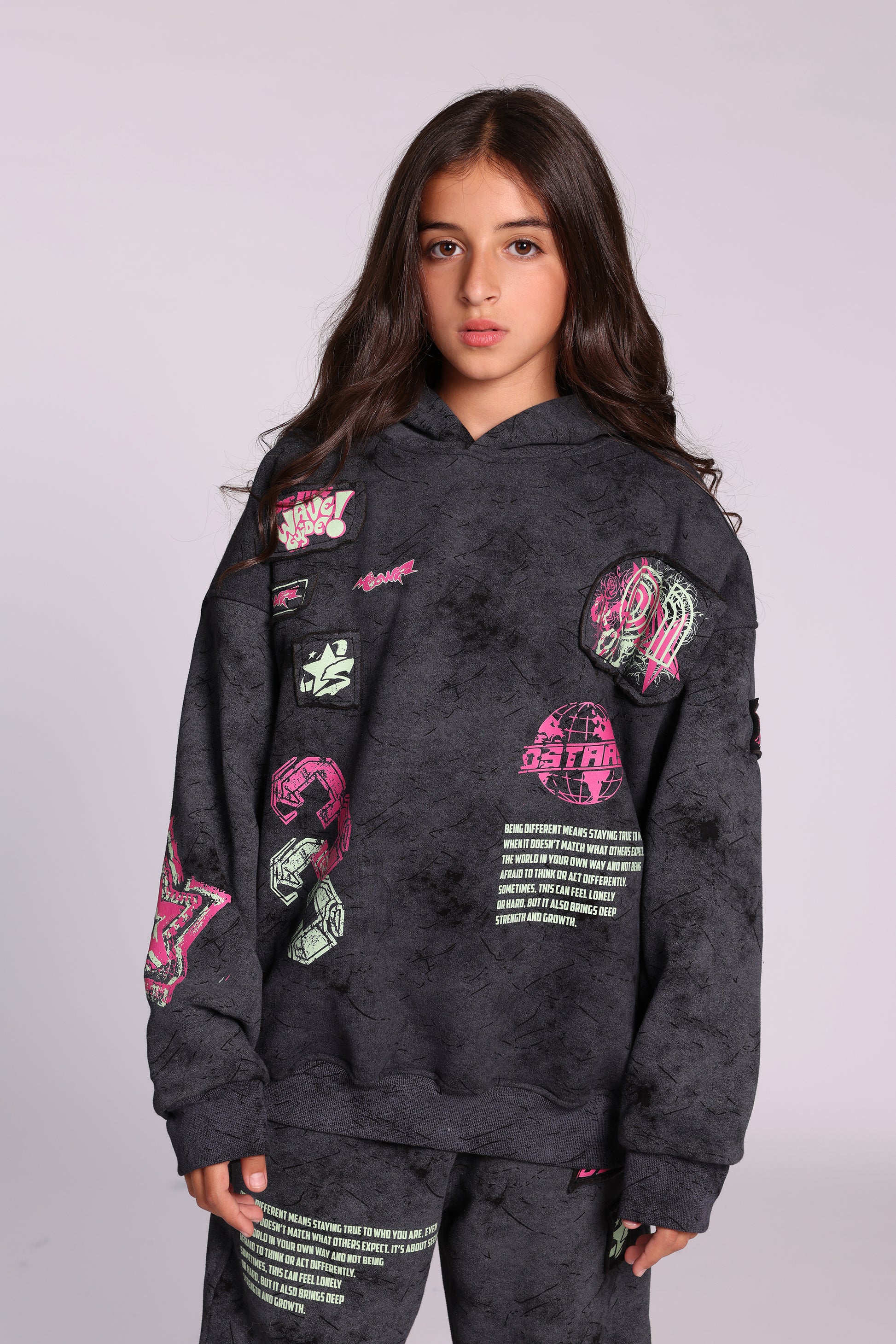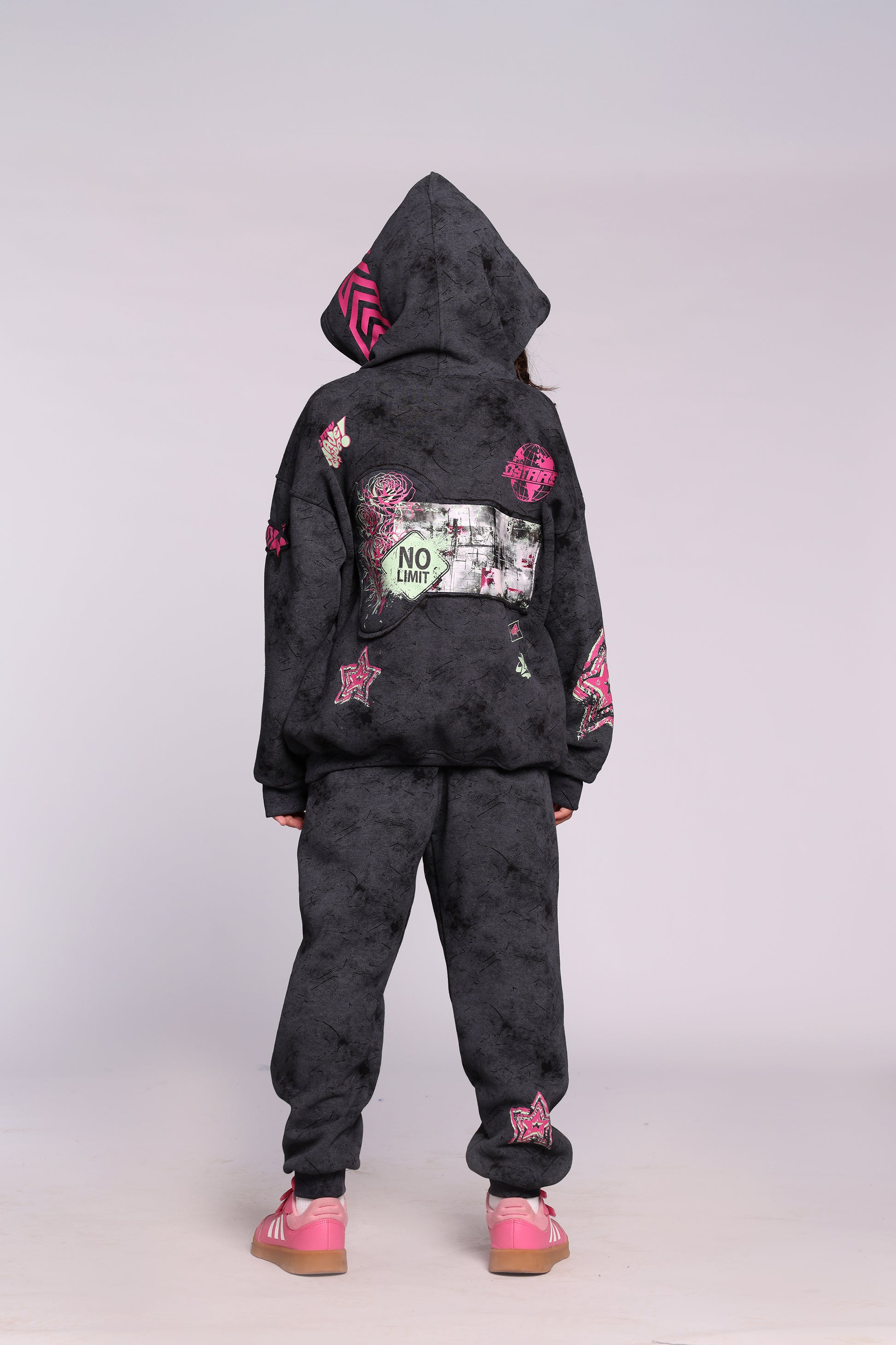 - Features bold stitched patches inspired by racing symbols and street style flair.